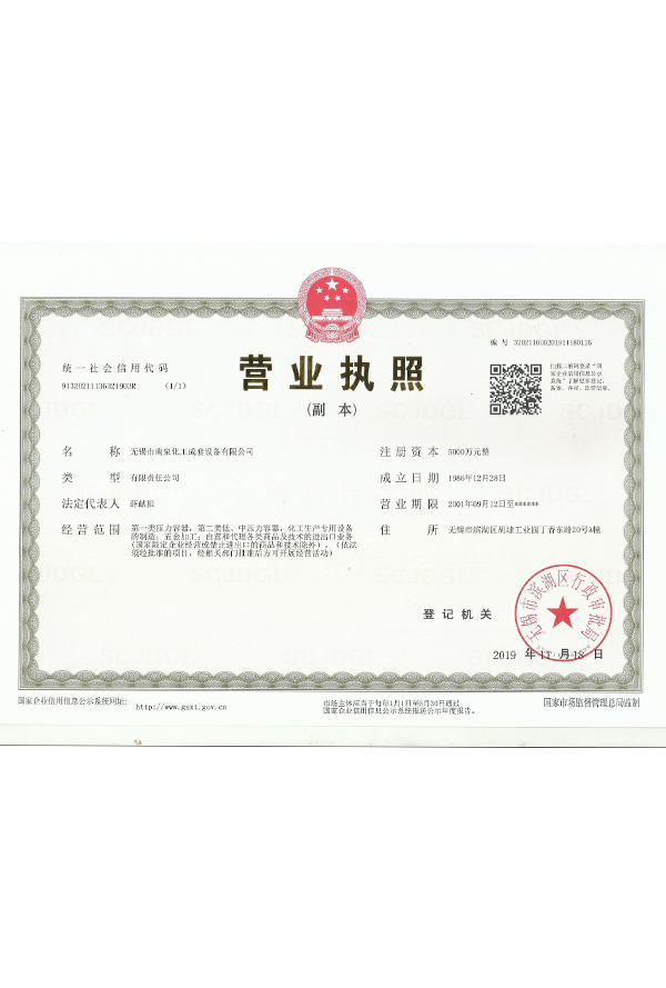 COPYRIGHT 無錫市南泉化工成套設(shè)備有限公司 ALL RIGHT
